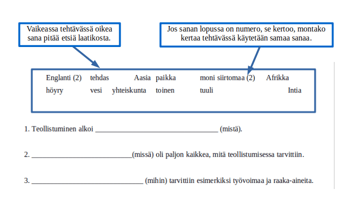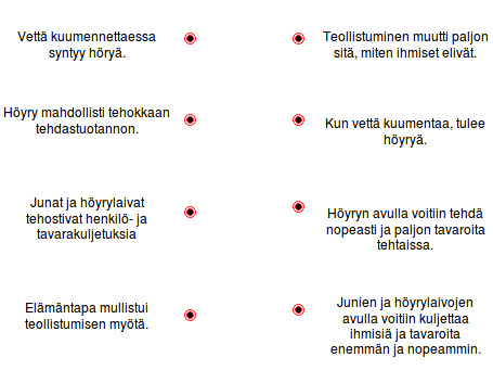 Yhdistämistehtävässä harjoitellaan sanastoa ja historian oppikirjojen tyypillistä kieltä. Tehtävässä pitää yhdistää samaa tarkoittavat ilmaukset.